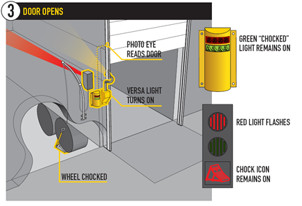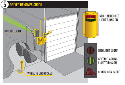 They offers an innovative safety feature that alerts the dock workers when the chock is prematurely removed. The inside control panel and dock light will flash on and off, alerting dock workers that the trailer is no longer secured. (Versa Light® dock light sold separately). Inside and outside audible alarms are standard features also. Smart Chock provides a safe, seamless communication system that is easy for workers to implement, it does not provide a bypass switch, eliminating the possibility of the system being overridden.