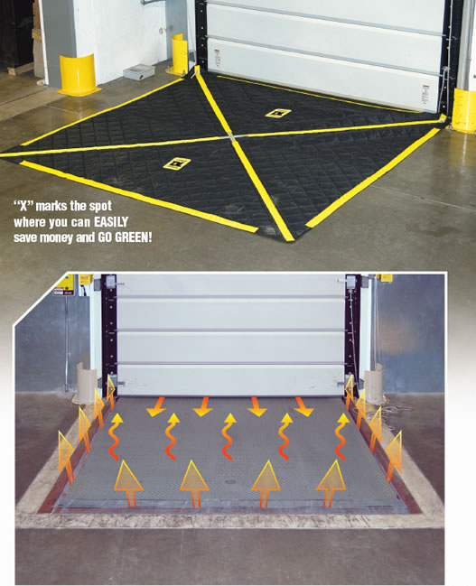 The diagram above demonstrates how outside heat (or cold) can be transferred through the leveler plate and how air flows through the gaps around the leveler and through the gap at the bottom seal of your dock door. Using the Leveler BlanketTM between each load or between each shift will greatly reduce the amount of wasted energy.