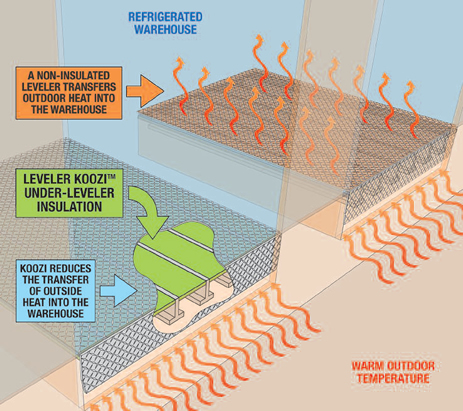 Leveler Koozi™ greatly reduces heat transfer from the dock leveler – saving energy.