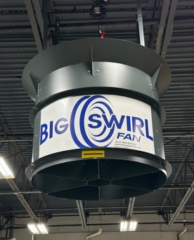 The Big Swirl Fan is launched as a low foot-print, High Volume High Velocity alternative to HVLS fans in warehouses and other spaces that do not benefit from HVLS fans.